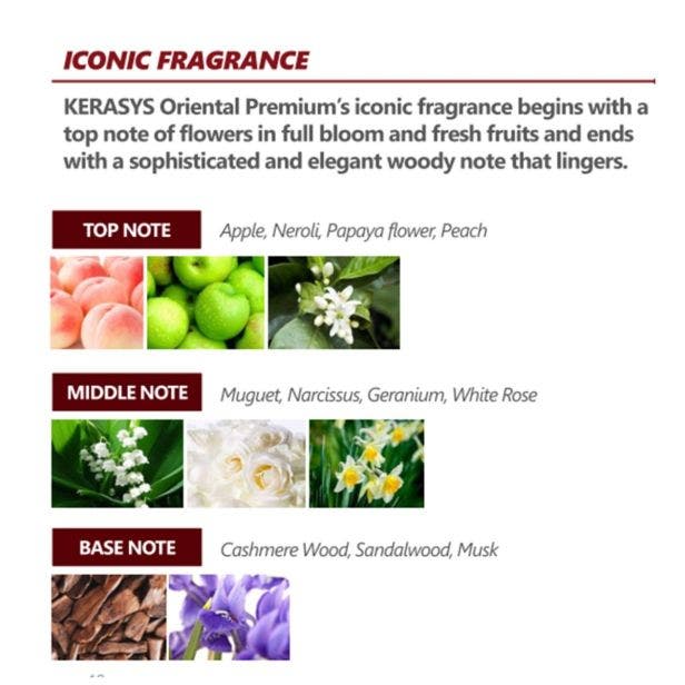 Água, Álcool Cetearyl, Álcool Stearyl, Cloreto de Behentrimônio, Dimeticone, Fragrância, Álcool Isopropílico, Carbonato de Dicaprilila, Cloreto de Ceteardimônio, Álcool Benzílico, Sorbitol, Álcool Behenílico, Aminopropil Dimeticone, Amodimeticone, Propilenoglicol, Ceteareth-20, Laureth-23, Lactato de Potássio, Extrato do Bulbo de Lírio Branco (Lilium Candidum), C12-14 Sec-alketh-7, Fenoxietanol, Óleo de Semente de Camélia Japônica (200 ppm), Ácido Lático, Trideceth-10, Queratina, Hidroxietilcelulose, Queratina Hidrolisada, Etilhexilglicerina, Óleo de Semente de Argan, Óleo de Amêndoa Doce (Prunus Amygdalus Dulcis), Óleo de Semente de Jojoba (Simmondsia Chinensis), CI 19140 (corante amarelo), 1,2-Hexanediol, CI 17200 (corante vermelho), Butilenoglicol, Extrato de Chrysanthemum Zawadskii, Extrato de Raiz de Angelica Autiloba, Extrato de Raiz de Cnidium Officinale, Extrato de Folha de Camélia Japônica, Extrato de Romã (Punica Granatum), Extrato de Raiz de Bletilla Striata, Extrato de Raiz de Ginseng (Panax Ginseng), Proteína Hidrolisada de Cevada, Proteína Hidrolisada de Algodão, Proteína Hidrolisada de Arroz, Proteína Hidrolisada de Soja, Proteína Hidrolisada de Trigo, Geraniol, Linalol, Benzoato de Benzila, Citronellol.